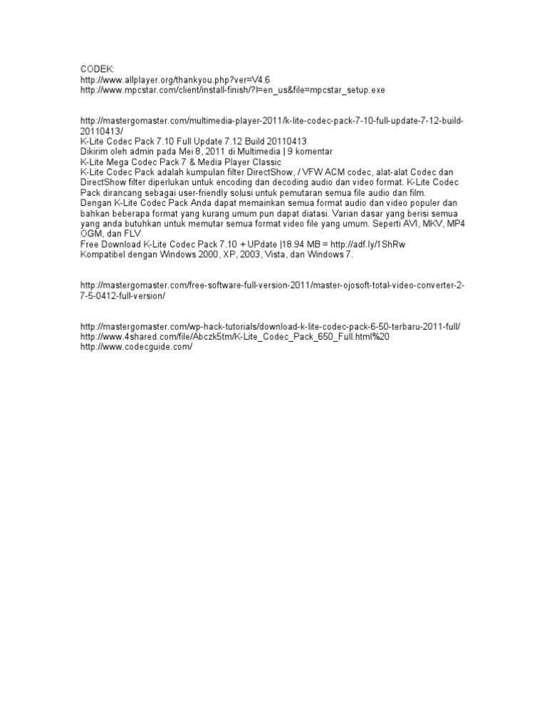 Codec Terbaru / Windows 7 Codec Pack Terbaru Download Archives Kuyhaa - All are free, the only difference being the complexity to offer something to every user.. Decode and stream copy support for xll substream in dts audio tracks. These are required to encode and decode audio or video formats. The combined community codec pack is a simple playback pack for windows with the goal of supporting the majority of video formats in use today. The software has been designed as a simple, free, All are free, the only difference being the complexity to offer something to every user.